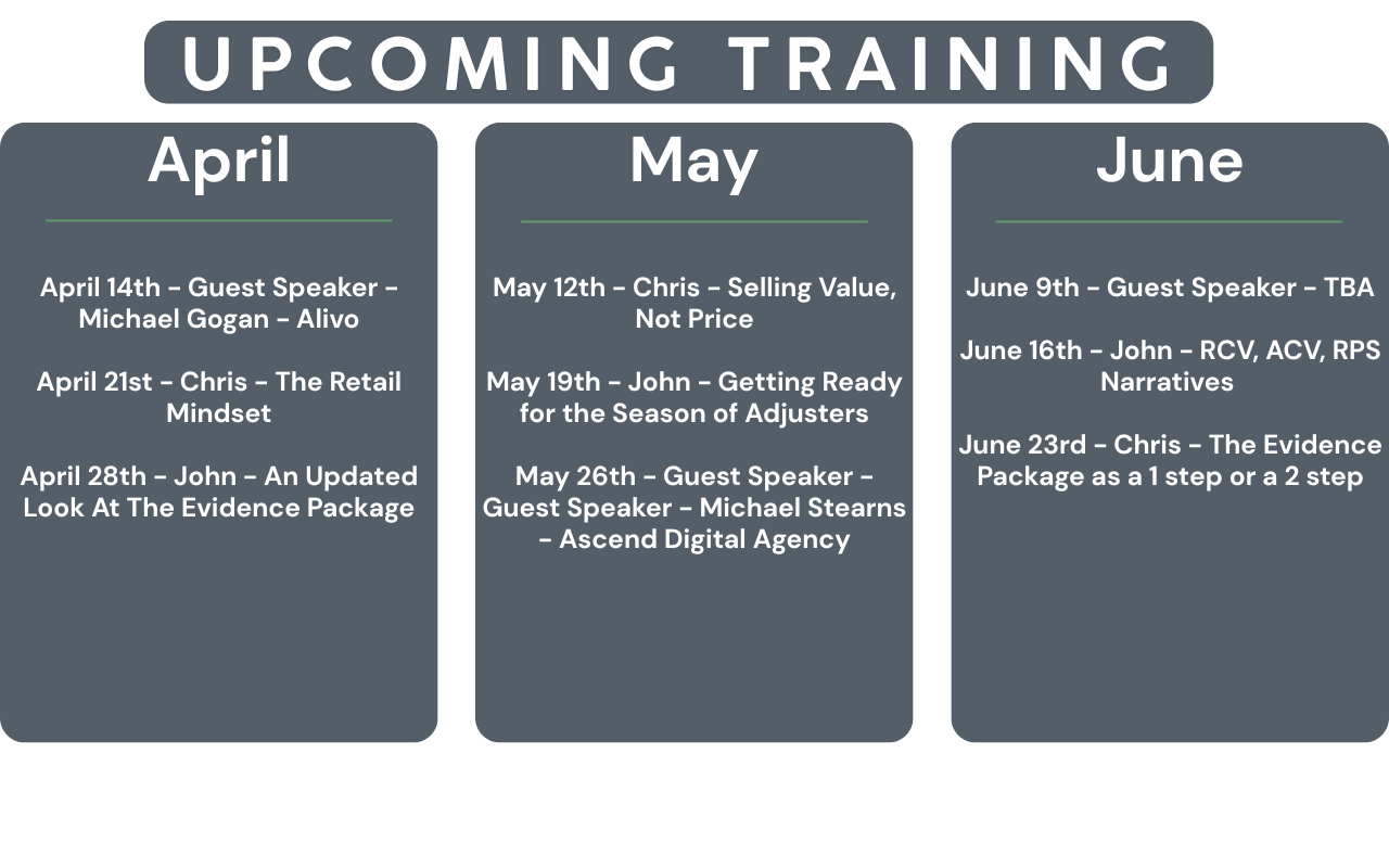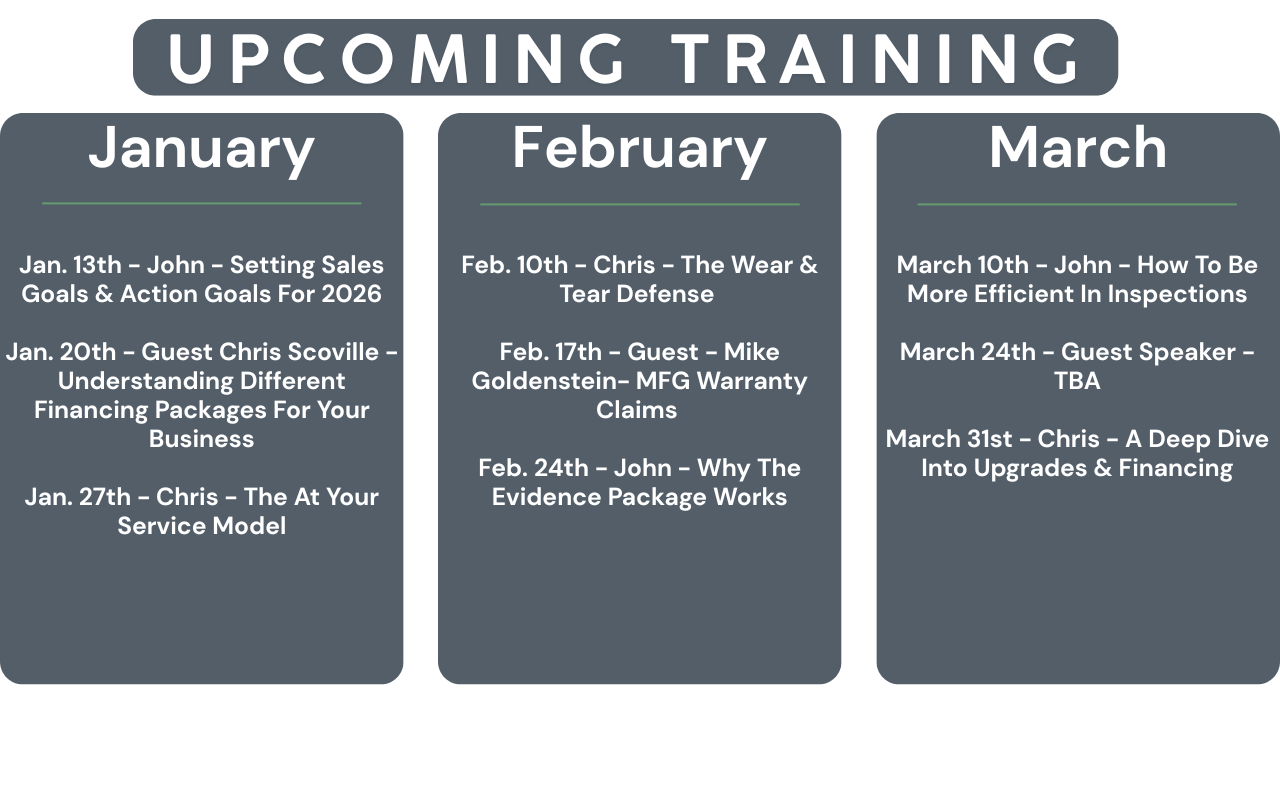 3 Zooms a month - Expert playbooks, strategies, and techniques for thriving in the roofing restoration industry